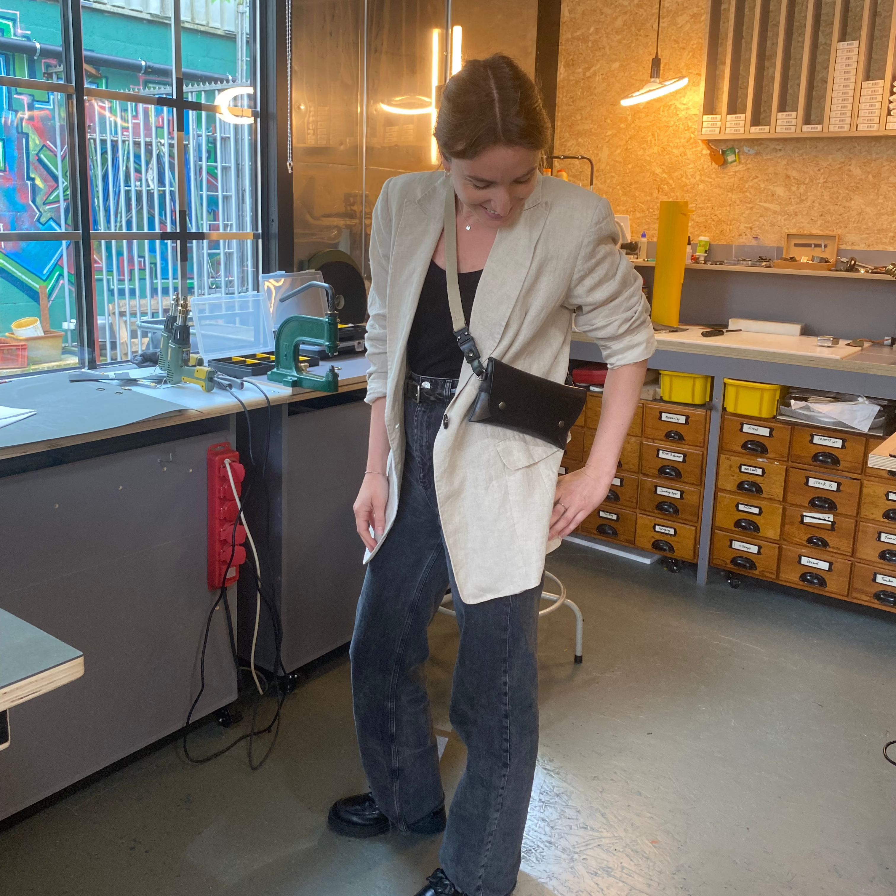 Johannes is a fun, enthusiastic and professional man with a great sense of design. Just his self-built workplace made me happy. I made a beautiful bag from high-quality leather. Together we went through the bag making process step by step. Nice to see how this all works. He explained everything well and guided me every step of the way. Very happy with the end result!