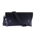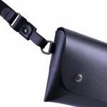 Compact yet clever, it’s designed with two compartments, snap-button closures, and large enough for your essentials (phone, small wallet, keys) and small enough for hands-free ease. The nylon strap adjusts so you can wear it crossbody in front, or over the shoulder.